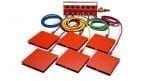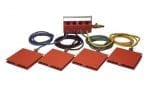 As outline above, each load module system includes four or six load modules with quick disconnect fittings, one control unit, 30 m air supply hose with on/off ball valve, 2 x 4 m (3 x 4 m) and 2 x 6 m (3 x 6 m) long interconnecting hoses with quick couplings. Non-standard hose lengths are available on request. The module plates marked with X are made of aluminium extrusion with a rubber cloth glued on the top surface. The module plates for MLS 408, 412 and 612 marked with C are made of cast aluminium. The module plates for MLS 415 and 615 marked with XL are made of a low profile aluminium extrusion.