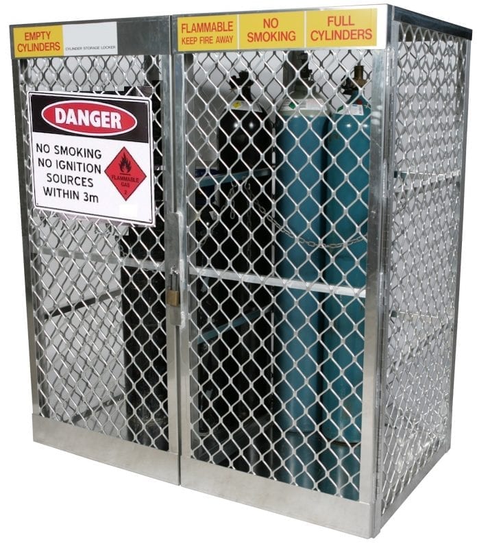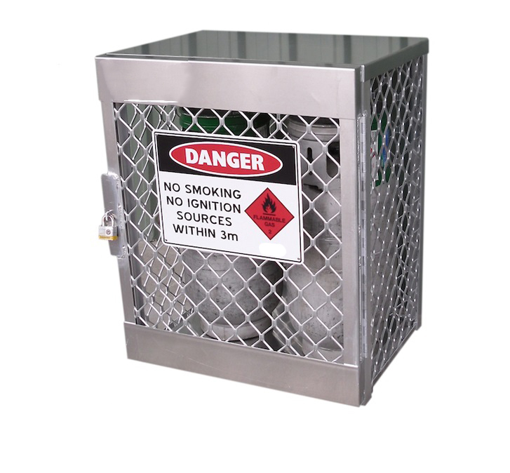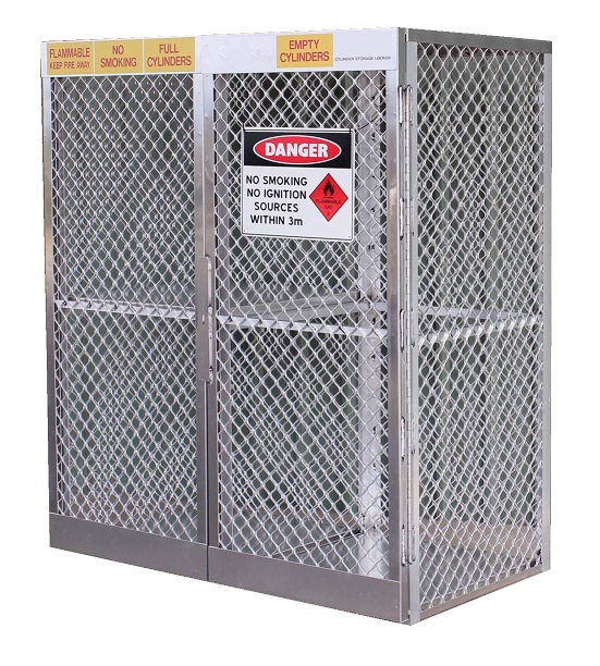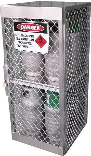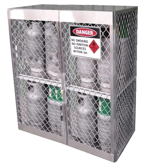 Those 100% welded aluminium lockers are manufactured to comply with AS 4332 – 2004, for the safe storage and handling of LPG and compressed gases in cylinders.