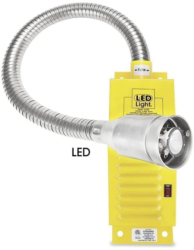 These lights have a distinctive stainless steal, flexible tube that is practically indestructible. Its multi-position structure prevents it from breaking if impacted by a forklift or door. This means they are able to survive collisions and can be adjusted to any position. Increase your safety today by installing this amazing lighting system in your workplace. Dock Eye’s M421 Halogen construction features a coated bulb that retains any broken glass from if fractured (ideal for food manufacturing & distribution facilities).