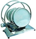 With the Drum Tumbler (code DT205), loading 205-litre drums is easy to do. The hoop is placed over the drum and clamped into position with adjustable toggles. With the drum contained, it rolls up the ramp of the motorised base and into position where mixing can occur. When unloading, this procedure is reversed. The motorised base is fitted with rollers to assist the hoop and drum.