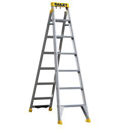 A superior strength option with a load rating of 150 kg. It is reliable and features a quick-latch mechanism that converts the stepladder into an extension ladder with the push of a button. Its tread design and fascia top caps provide stability to the overall ladder frame.