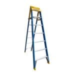 This versatile option converts from a stepladder into an extension ladder and is perfect for tradesmen and contractors. The Fibreglass Step Extension Ladder is non-conductive, durable and used for many electrical applications. It features the punch lock tread design and deep fascia top caps for frame rigidity. Its rear leg extends at 300 mm increments and is locked into place by heavy-duty hinges. These models have a load rating of 150 kg and a ‘vee rung’ is supplied as standard for pole work.