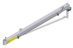 The EasyCrane is equipped with a vacuum lifter, which is connected to a pump located on the shelf behind the crane. The Crane’s tower is adjustable in height and can be mounted on a mobile footplate or attached directly to the floor. It also has an inner and outer jib arm that can be locked in rotation. On the inner jib is a parking brake that can be used to prevent the arm from ‘walking’ from the position. Between the jibs are two rotational limiters restricting the rotation angle.