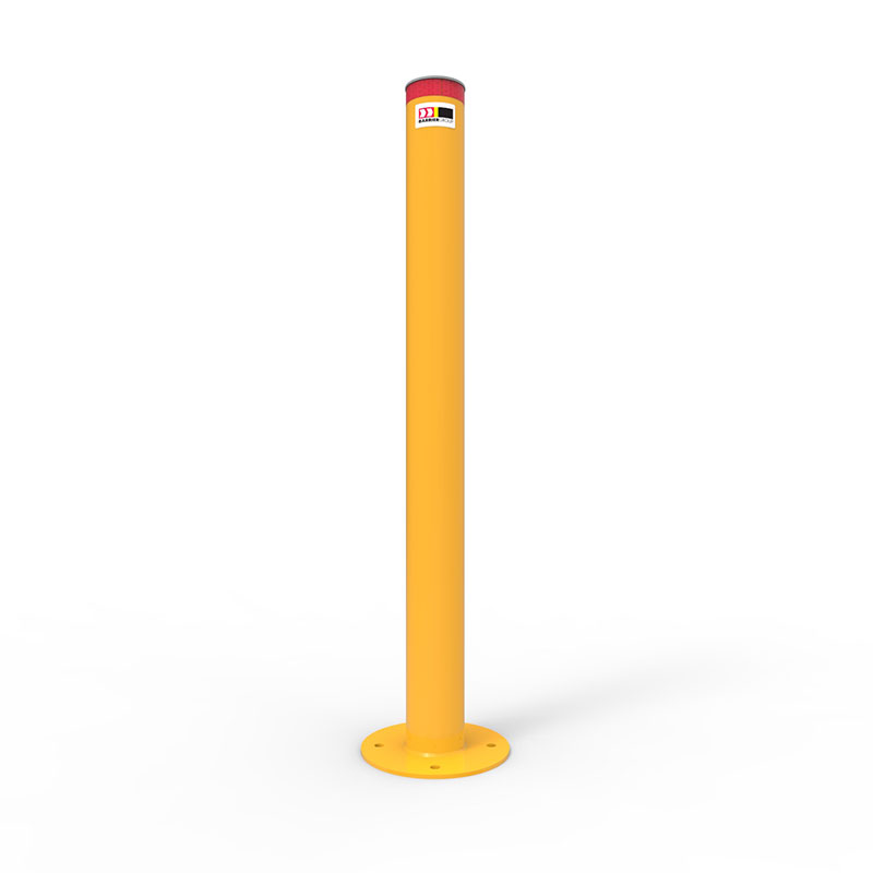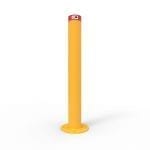 - Powder coated yellow models include a reflective band around the top of the post.