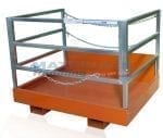 The cage features a hinged front ramp that is perfect for trolley access. For a seamless materials handling solution, it can be used in conjunction with our Goods Trolleys. The unit is supplied with a safety chain that secures the unit to the forklift. It is constructed with zinc sides and enamel paint on its base.