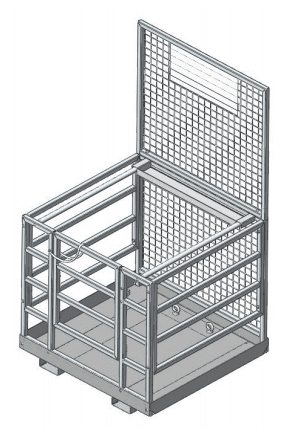 Forklift Mounted Work Platforms should be used with appropriate safety harnesses that are suited to working at heights activities. All units are supplied with fork locking pins to safely secure the platform to the forklift and feature self-closing gates that open inward with a bow latch.