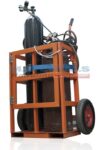 A craneable trolley that’s designed to carry one ‘G’ Oxygen and one type ‘G’ Acetylene gas cylinder. The trolley is fitted with handles for user control and it also features two 400 mm diameter air-inflated rubber tyres. Using the push handles the trolley can be moved manually. Alternatively, the device can also be transported via forklift, using its fork pockets, or via crane, with a provided certified lifting sling.