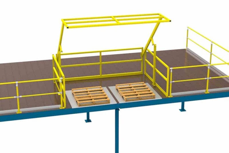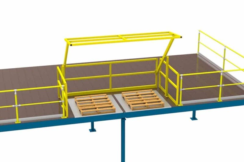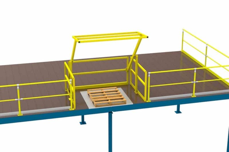 The Mezzanine Safety Gate provides effective fall protection for all personnel and ensures safe loading/loading of palletised components on mezzanine levels.