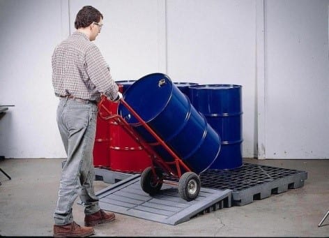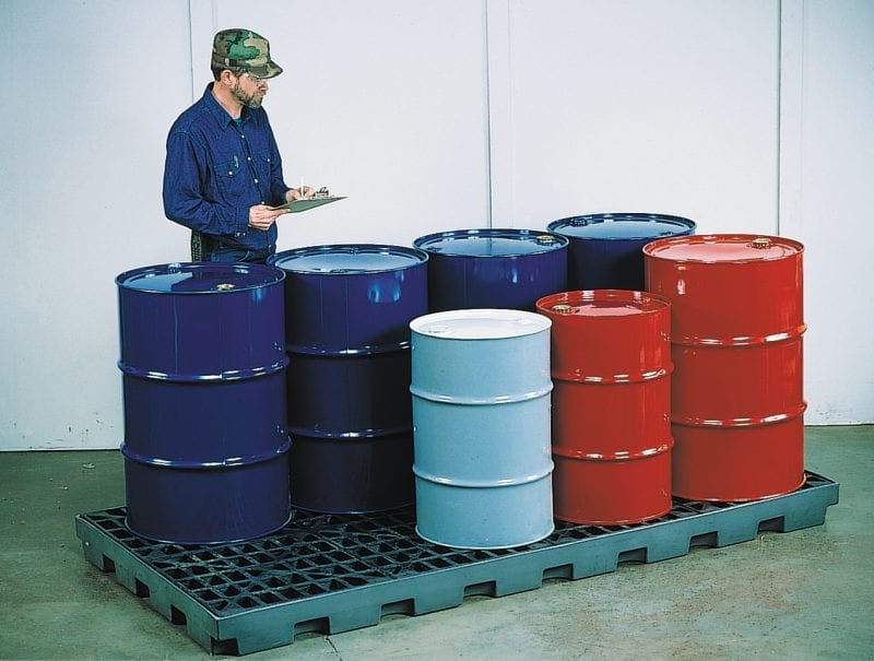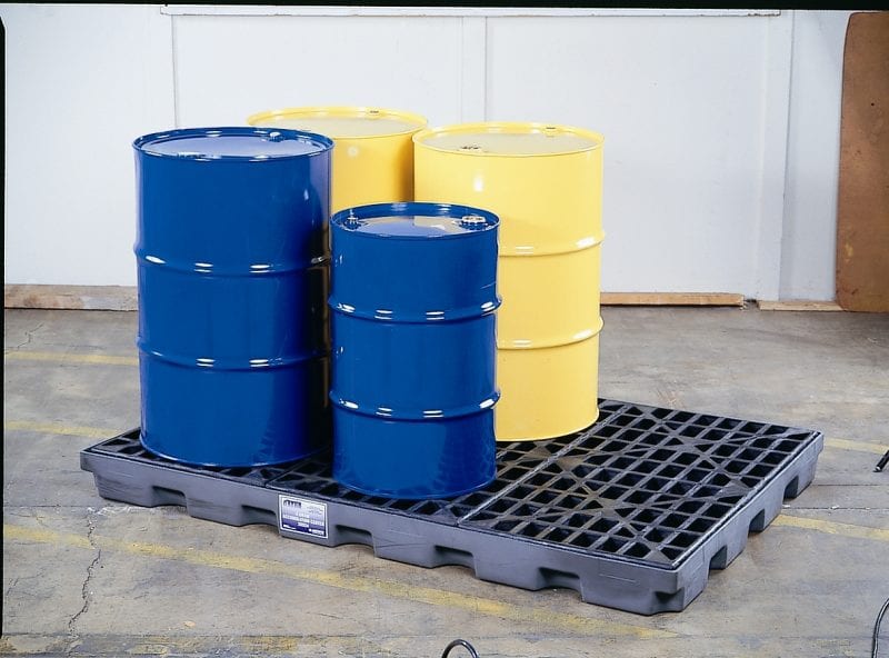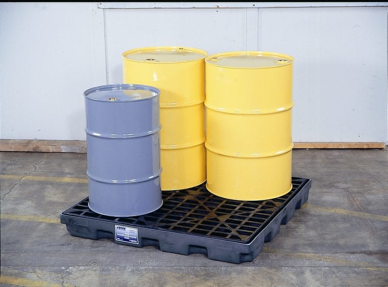 Of course, they can be used for a wide variety of other hazard liquid materials like lead-acid batteries etc. They have removable grates, for easy cleanup and are easily relocated when empty.