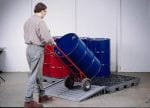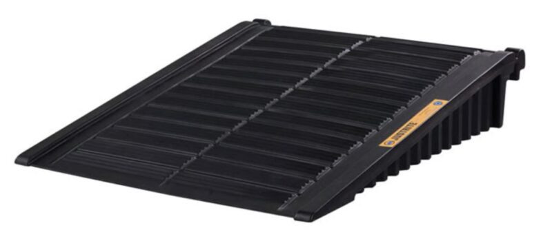 An optional ramp can be placed at any perimeter position to accommodate a drum trolley.