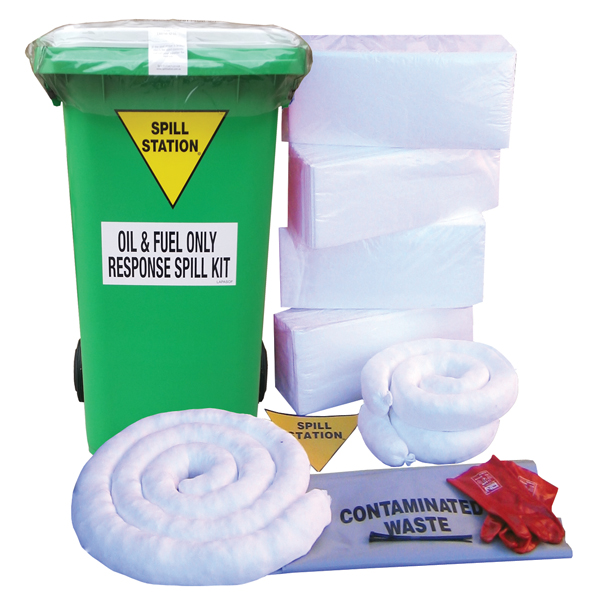 These on-site spill response solutions meet EPA requirements and are available in 120lt, 400lt and 770lt capacities. They will absorb all known oils, gasoline, diesel, avgas and solvents but not water. They will absorb oil and fuel from water surfaces and can absorb 20 times their weight in oil.