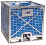 Made from tough polyethylene, the Bulkibox is encased in a heavy-duty, hot dipped galvanised steel frame with solid mesh sides and provides easy forklift access, stacking capabilities and is top lift certified.