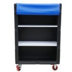The clean linen trolley has 2 fixed and 2 swivel total brake castors.