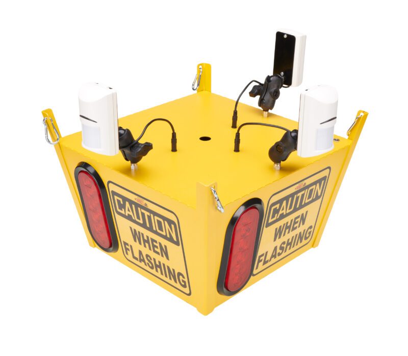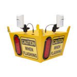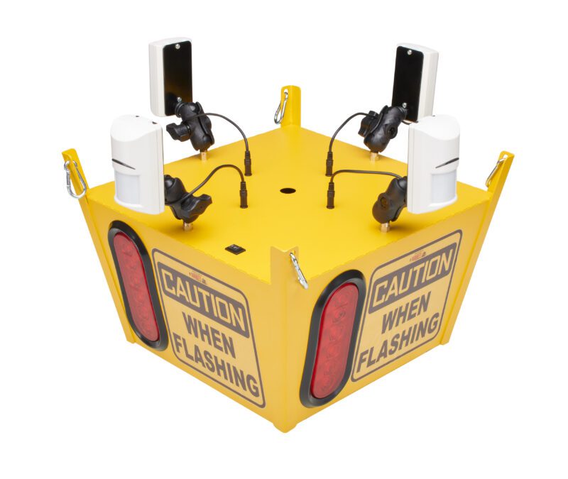 The Look Out 4 is intended to be mounted high enough to allow all traffic to operate below. The 4 motion sensors and 4 red LED lights are positioned to operate in a 4-way intersection with all 4 sides each fitted with 1 light and 1 motion sensor.