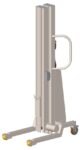 The Multilift features a unique ball-screw lifting mechanism. Other similar lifting devices use chain or wire rope to control the carriage lifting and lowering in the mast. The strength of the ball screw ensures the device is 100% safe and precise to control. The ball screw cannot fail or drop the load thanks to this innovative design. The lift mechanism is completely enclosed for safety – no operator pinch points (protective enclosure removed in the image on the right).