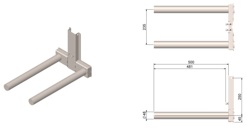 The range of standard attachments for the Multilift is extensive. You may need a basic platform or a simple prong attachment for handling rolls. No problem. The tooling range includes complex tooling with one (or more) powered functions. This tooling allows the operator to grip, lift and rotate the workpiece using the battery-powered function of the Multilift. Some basic options are shown below. Check the PDF brochure download for more detailed information!