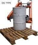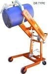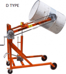 When rotating the DR version, a webbing band with ratchet buckle secures the drum. Lifting the drum is by hydraulics and your choice of either foot, air or battery operation. Rotating or tipping the drum is achieved by a handle operated worm gearbox. This allows for pallets to be unloaded and drums placed into racking vertically or horizontally.