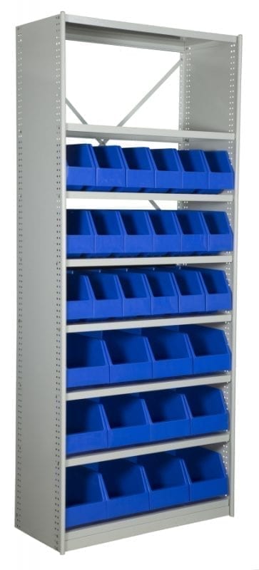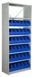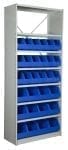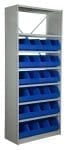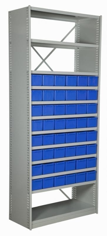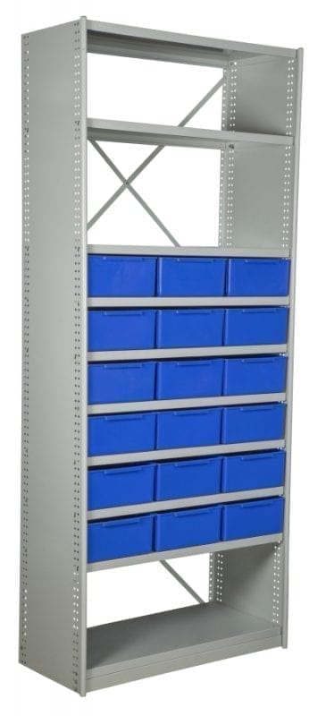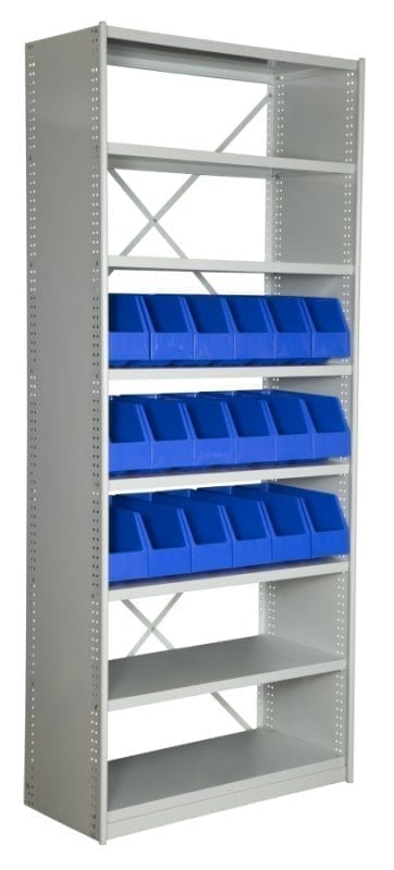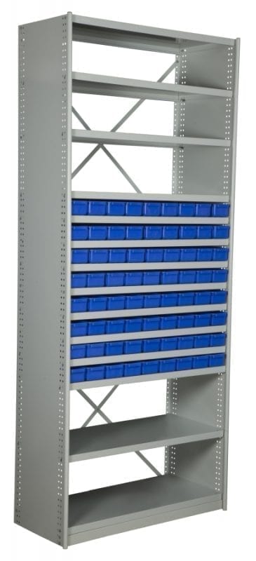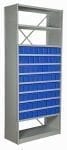 There are also five shelving kits complete with these parts trays available and 2 shelving kits without trays for other storage purposes. They are 900 x 2175 x 400 mm (W x H x D). Open front bins also have five shelving kits available. They use the same panel shelving as the parts trays.