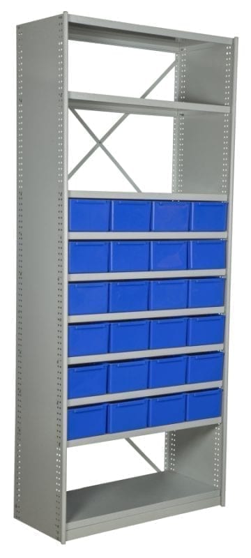 + Add to Quote RequestOur Parts Trays and Shelving Kits provide high-density storage of small to medium size parts. They have large flat front faces for fitting adhesive labels, which allows for easy identification of stock. Each tray is durable and a wide range of compartment sizes can be achieved by adding extra dividers that lock into the divider slot with locking tabs. The rear up-stand allows the container to hang off the front edge of the shelf above for single-handed picking of parts or viewing the contents.
