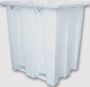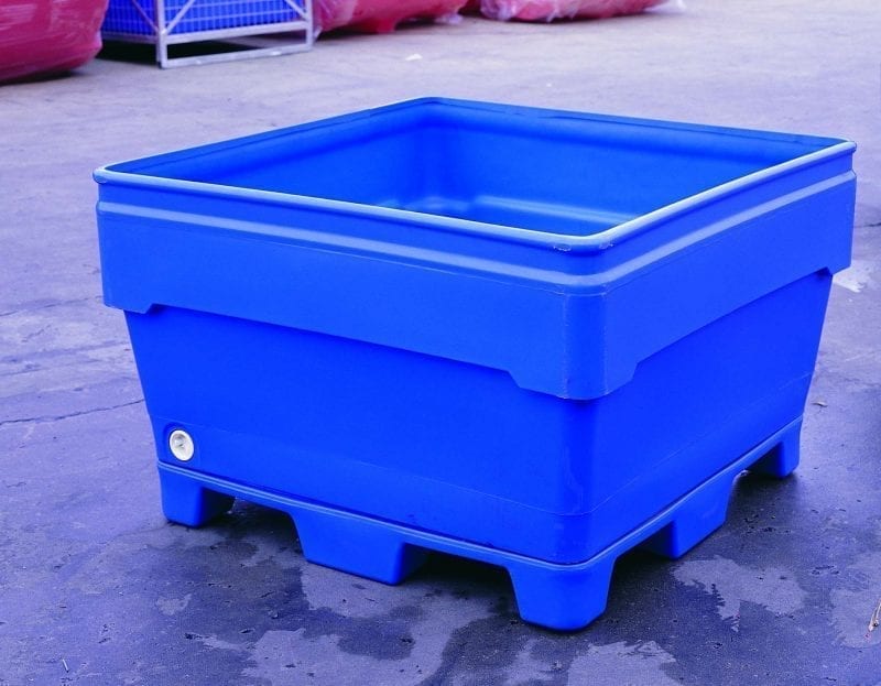 Made from food grade polyethylene, pallet bins can be handled with a forklift or pallet truck (two way access) or rotated via forklift. Available in a wide range of sizes, 500 to 1500 litre, Pallet Bins are perfect for  food, fruit and vegetables,nuts and general materials handling. Options include lids and rotatable bases.