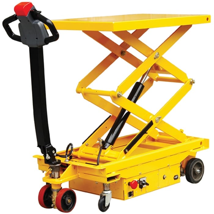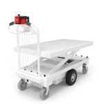 The platform is raised and lowered by the onboard hydraulic system, providing a powerful and fast lift speed. The functions are controlled by simple push-buttons on the console for platform UP and platform DOWN. The trolley remains still and parked when the trolley is switched off or the battery power is disconnected (charging for example). This is due to the electronic braking feature that is always applied in a safety scenario.