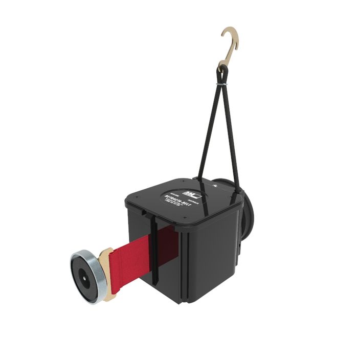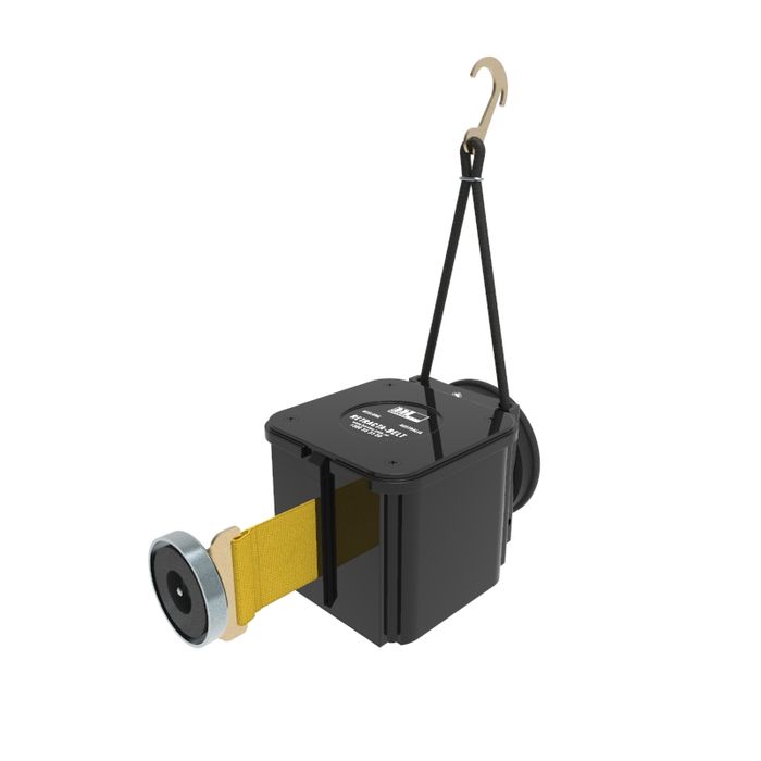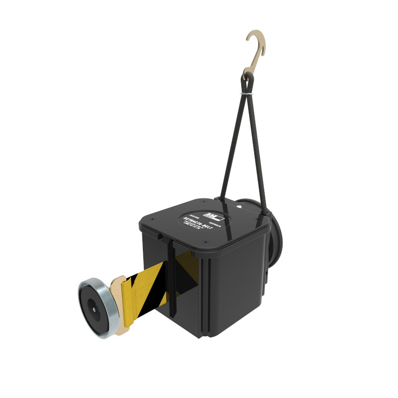 Magna Mount Retracta-Belt units are designed similarly as for the Wall Mount where floor space is limited. They have magnets on the strap dispenser and at the end of the belt. They are ideal in warehousing where the forklift operator can carry it from aisle to aisle. All Magna Mounts belts have a powder coated aluminium housing and are individually packaged with a magnetic belt clip. The belt is black/yellow.