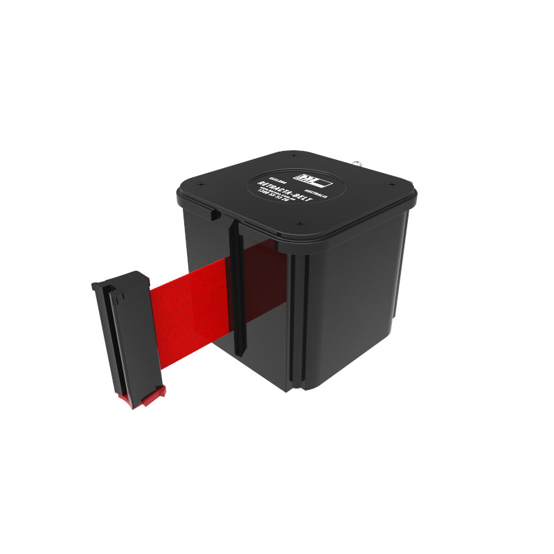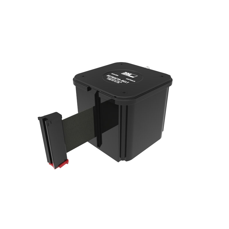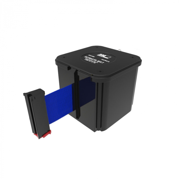 Wall Mount Retracta-Belt units are designed for wall mounting where floor space is limited or post and base units are not appropriate. They are suitable for a wide range of applications. Being 7.6 metre long makes it particularly useful in large span situations such as warehouse aisle closures and loading docks etc. It comes with a QRWR wall receiver and a black/yellow striped belt. Powder coated black aluminium housing.