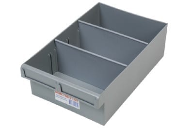 + Add to Quote RequestStrong and durable small parts trays made from grey polypropylene to resist solvents and oils. There are two widths 100 and 200mm and these are available in 300, 400 and 600mm depths (length). SPT012, SPT017, SPT024 and SPT025 supplied with 2 removable dividers. SPT027 and SPT028 supplied with 5 removable dividers. Simply position the dividers to suit your needs. Additional dividers are available.