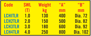 The Safe Working Load (SWL) of this unit varies between 1 – 4 tonne (refer chart below) depending on type chosen.
