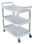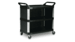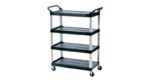 Durable and attractive carts function in front and back of house applications. Manufactured with aluminium uprights and moulded shelves that are engineered for durability and appearance. Fitted with non-marking swivel castors for easy movement and large shelves for a variety of equipment and supplies.
